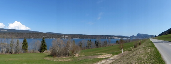 En partant de chez soi à vélo, le voyage commence sur le pas de la porte, sans préoccupation, sans contrainte, sans frais. Liberté entière dès le premier mètre, dégagée de toute obligation. La poitrine ne serre pas, je suis contente de pouvoir repartir. Je serai vite rentrée : sept mois maximum. Je passe la première frontière au troisième kilomètre et entre en Suisse. Ça y est me voici à l'étranger, quel exotisme ! Les premiers kilomètres, connus par cœur pour être pratiqués régulièrement adoptent en ce jour particulier une autre saveur, une autre valeur, une autre couleur. J'y suis plus attentive, plus réceptive. Je quitte pour un temps mon pays si beau. Je le quitte souvent, longtemps, peut-être juste pour être bien consciente de la manière dont j'y suis attachée, à quel point il est calme et paisible, privilégié, et combien j'aime y revenir. Les taches de neige sont encore bien présentes dans les ubacs tandis que dans les adrets déjà la vie grouille. L'Orbe s'écoule et méandre, impassible et égal à lui-même. Eaux noires traversant les tourbières. Les troncs blancs des bouleaux ne sont pas encore cachés par le feuillage absent en ce début de printemps. Déjà le lac de Joux avant de basculer côté Léman où règne un autre climat. Ici les cultures sont déjà bien vertes. Pour me boucher l'horizon au loin : les Alpes encore toute enneigées. À Romainmotiers, un arrêt s'impose à l'abbaye. Mes parents m'accompagnent ce premier jour. Après être passée sous le premier pli du Jura et ses hauts sommets (Dent de Vaulion, Suchet), je remonte dormir entre Chasseron et Aiguillles de Baulmes à Sainte Croix chez Claire et Jérémy, des WS « warm shower ». Le voyage a vraiment commencé, paysages, visites, rencontres.