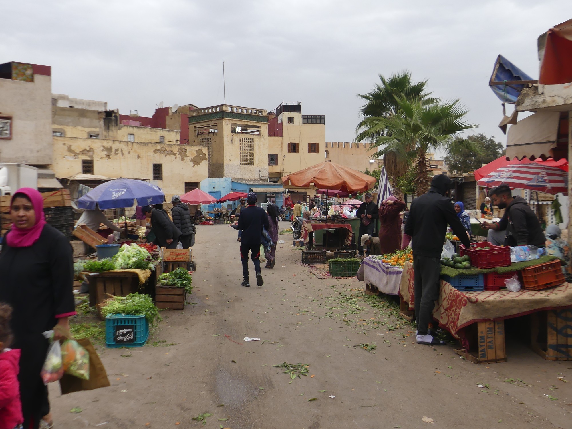 Le jour suivant, je marche jusque dans le quartier des Habous, celui du palais royal, qu’on ne peut pas voir, celui aussi du Mechouar, qui était l’endroit où logeaient les personnalités reçues par le roi. Il y a une petite médina, quelques arches, mais qui ne vaut pas d’y passer trop de temps. Entre les deux, il y a une ville “normale”, avec des boulevards, des bagnoles, des magasins, le marché central où je m’envoie une assiette de lentilles. De retour à l’auberge, comptant me reposer, je découvre que c’est la fête, une scène a été montée juste devant la porte et le patio de l’auberge fait office de lieu d’accueil… c’est bien raté pour le calme. La réceptionniste me dit que tout s’arrête en fin d’aprem…