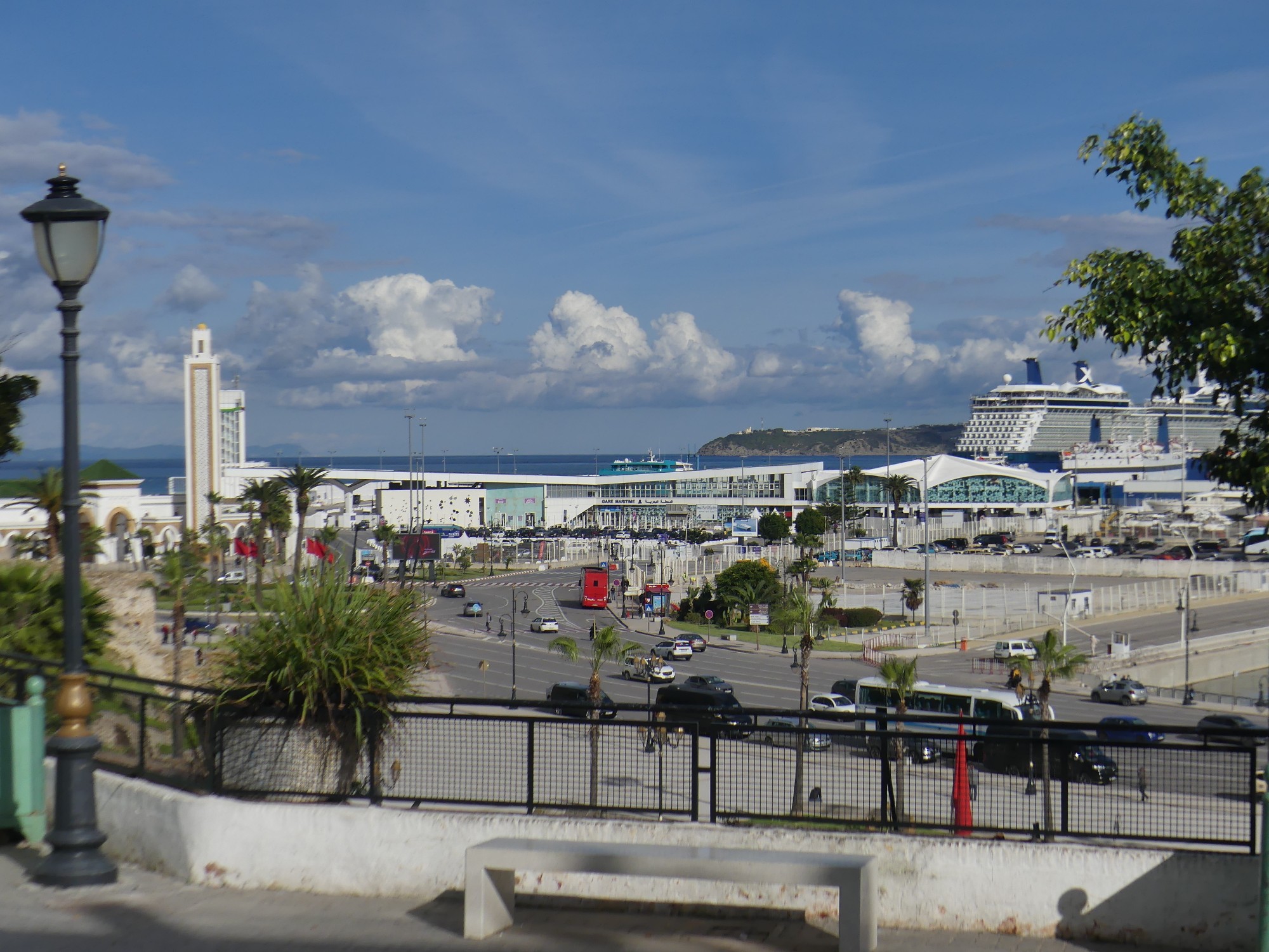Tanger, toujours cette chanson dans la tête, elle ne me quittera pas tant que je ne la quitterai pas moi-même. Il n’y a franchement pas grand chose à voir. La médina, ok, les ruelles sont trop étroites, trop hautes, trop commerçantes, aucun rayon de soleil et pas vraiment de détails croustillants à se mettre dans l’objectif, même en arpentant de bas en haut et de droite à gauche au pas de sénateur, coincée derrière des groupes de 50 en file indienne. Beaucoup d’Espagnols. D’ailleurs c’est dans cette langue que je me fais souvent alpaguer, exit le french, ça rafraîchit mes modestes connaissances. Sinon, que des commerces. Les portes n'ont rien de spectaculaires. Non, je ne suis pas blasée. Le quartier Dradeb, tout en escaliers, pas de commerces, des habitants, et visiblement pas les plus riches de la ville. Ça fait comme une autre médina sauf que le quartier n’est pas ceinturé. De loin, et au soleil toute la journée, l’étalement des murs blancs sur le flanc de la colline est plutôt photogénique. Ensuite, le port, de pêche, de plaisance ou de ferries, tout est totalement inaccessible,